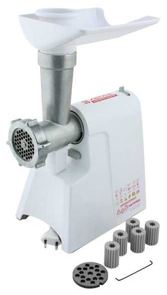 - + Выбирали долго между Аксионом и Мастерицей, смущала мощность, Аксион 1500 Вт, а Мастерица - 600 Вт, но как объяснил консультант, и там и там номинальная рабочая оказалась 230 Вт, а Мастерица понравилась очень корпусом - он небольшой в ширину, а как бы вытянут в высоту, таким клином, консультант в магазине пояснил, что это под ладонь, что бы удобно переносить! Да и по весу она гораздо тяжелее других оказалась, думала плохо, а спасибо знакомому с ремонтной мастерской - сказал хороший двигатель не может быть легким, намотки мало значит.. И еще подкупило 5 запасных колпачков в комплекте, у Аксион например пишут стираются быстро, а запасные только отдельно покупать.. По работе все отлично - перемалывает все, и фарш такой пышный, как пишут - что из за особого ножа.. думала так - а фарш реально очень пышный. Реверс есть, и есть кнопка, что бы удобно доставать шнек после работы - нажал и нож выезжает как бы вперед - разбирать собирать очень легко. Сначала не могла собрать - оказалось, что бы вставить в корпус шнек - надо не до конца закрутить кольцо,что закрывает решетку с дырками, сама виновата, не читала интрукцию..