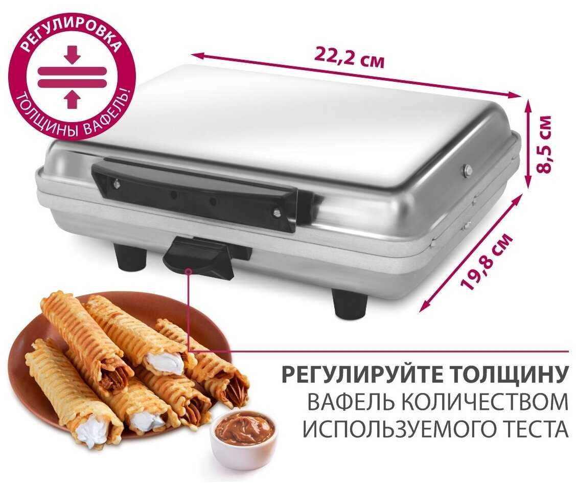 маленький, но!! трубочки идеального размера. у меня был советский такой, ещё 70-х годов, вот он прям в точности такой же. качество отличное. печет идеально ровно