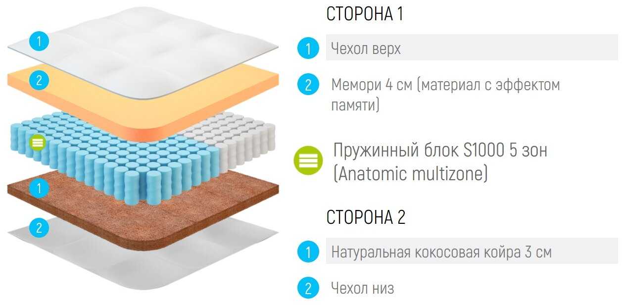 - наполнитель: комбинированный (кокос + латекс + мемори)