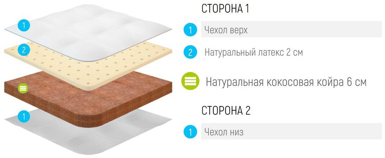 - наполнитель: комбинированный (пенополиуретан + кокосовая койра)