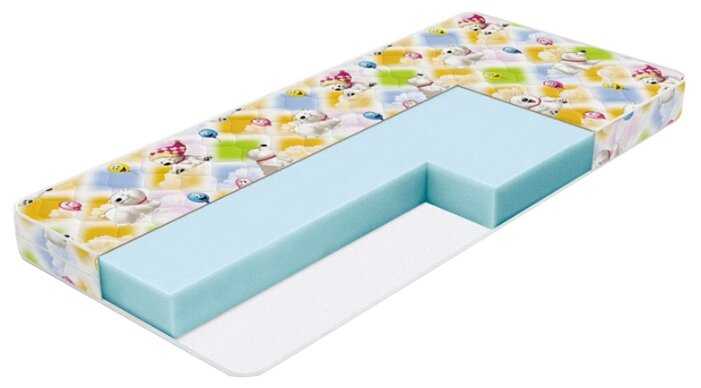 Характеристики:- Пружинный блок: беспружинный Наполнитель: искусственный латекс Жесткость стороны 1: средняя Жесткость стороны 2: средняя