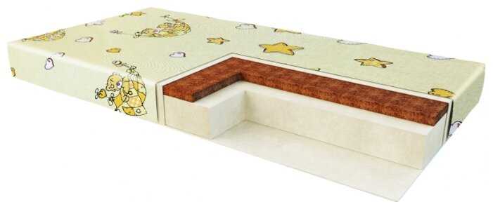 Характеристики:- Пружинный блок: беспружинный Ширина: 59 см Длина: 119 см Наполнитель: кокосовая койра Жесткость стороны 1: высокая Жесткость стороны 2: высокая