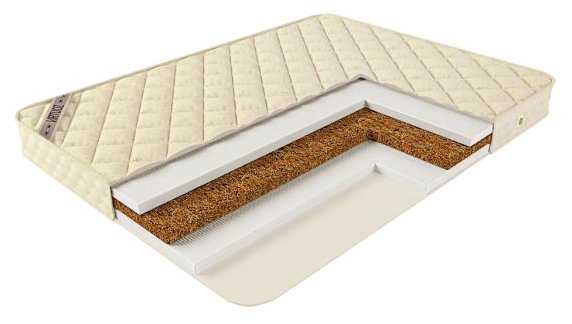 Характеристики:- Пружинный блок: беспружинный Наполнитель: кокосовая койра Жесткость стороны 1: высокая Жесткость стороны 2: высокая