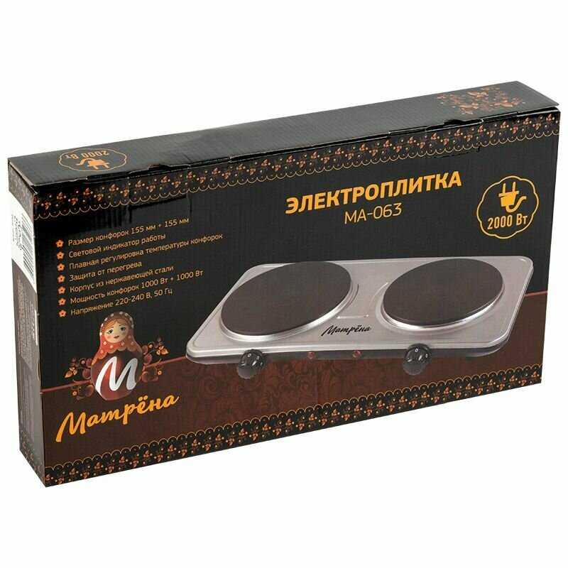 Дополнительная информация : | размер конфорок 155 мм + 155 мм, размер 43×24×7 см, корпус из нержавеющей стали, световой индикатор работы, плавная регулировка температуры, защита от перегрева, мощность 1000 Вт + 1000 Вт, длина шнура 64, 5 см |