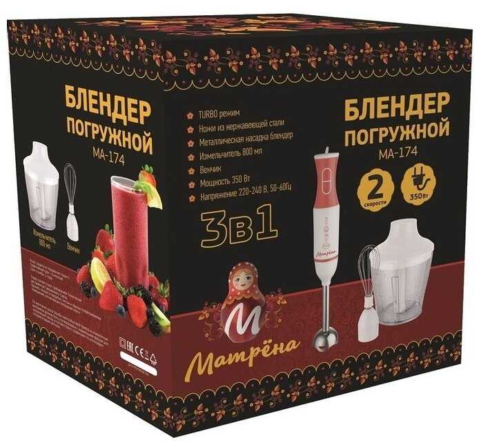 | Насадки : | венчик для взбивания, для приготовления пюре, измельчитель |