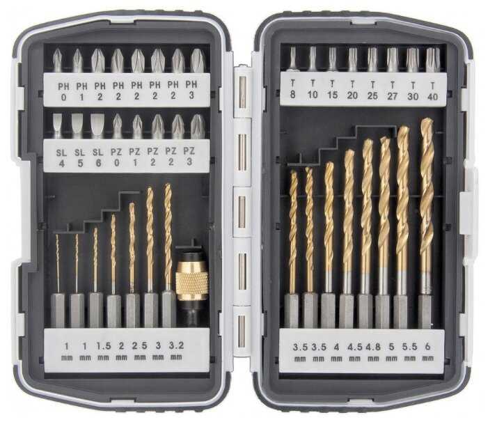 - + Набор приобретался для домашних и скорее бытовых нужд, но пришлось использовать его при электромонтаже. Заточка сверел хорошая, металл прочный, использовал в ударной дрели, закосячил сам из-за за больших оборотов. Биты обычного качества, показали себя вполне удовлетворительно.