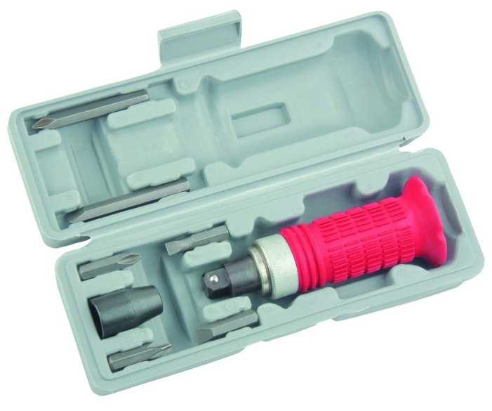 - + Защита рук при ударе молотком, сменные насадки 6 штук.