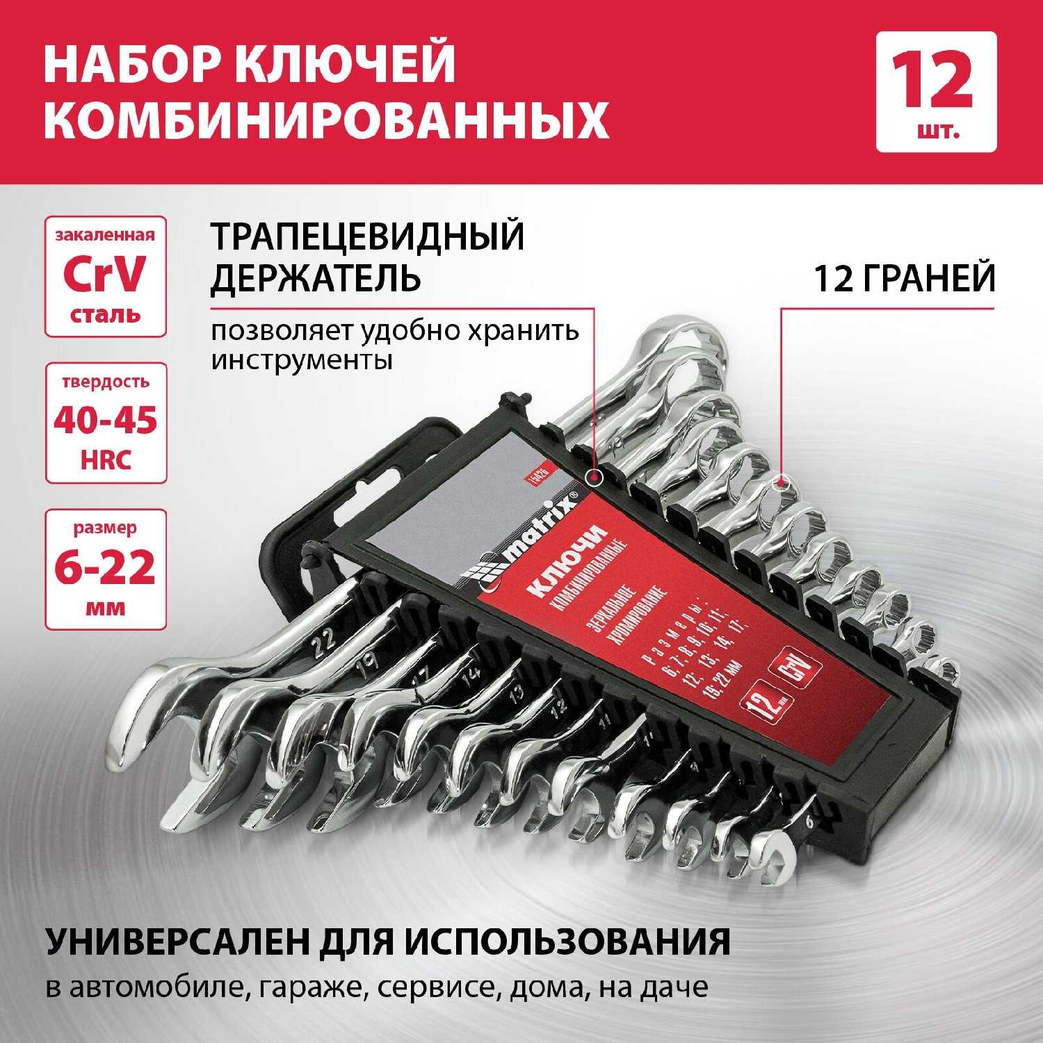 | Количество гаечных ключей : | 12 шт. |