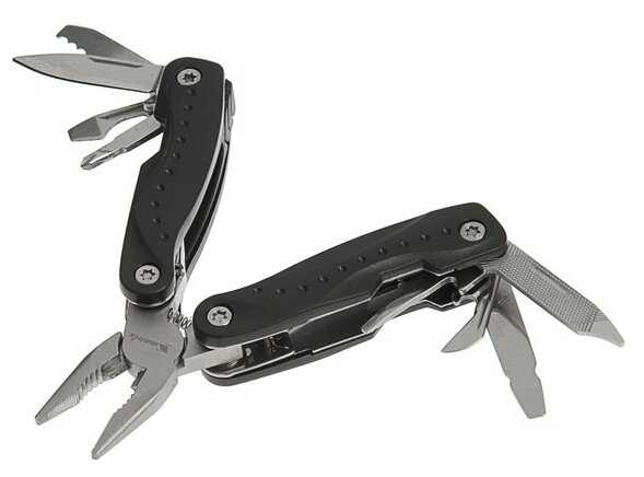 Инструменты (функции) : | длинногубцы с кусачками консервный нож открывалка для бутылок пилка для ногтей двусторонняя пила нож крестовая отвертка три плоские отвертки (большая, средняя, малая) |