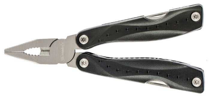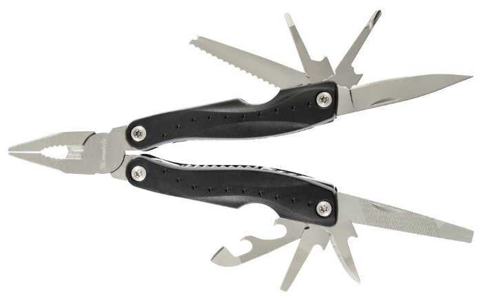 | Инструменты (функции) : | консервный нож, кусачки, линейка, нож, отвертка, открывалка для бутылок, пассатижи, пила, пилка для ногтей, плоскогубцы |