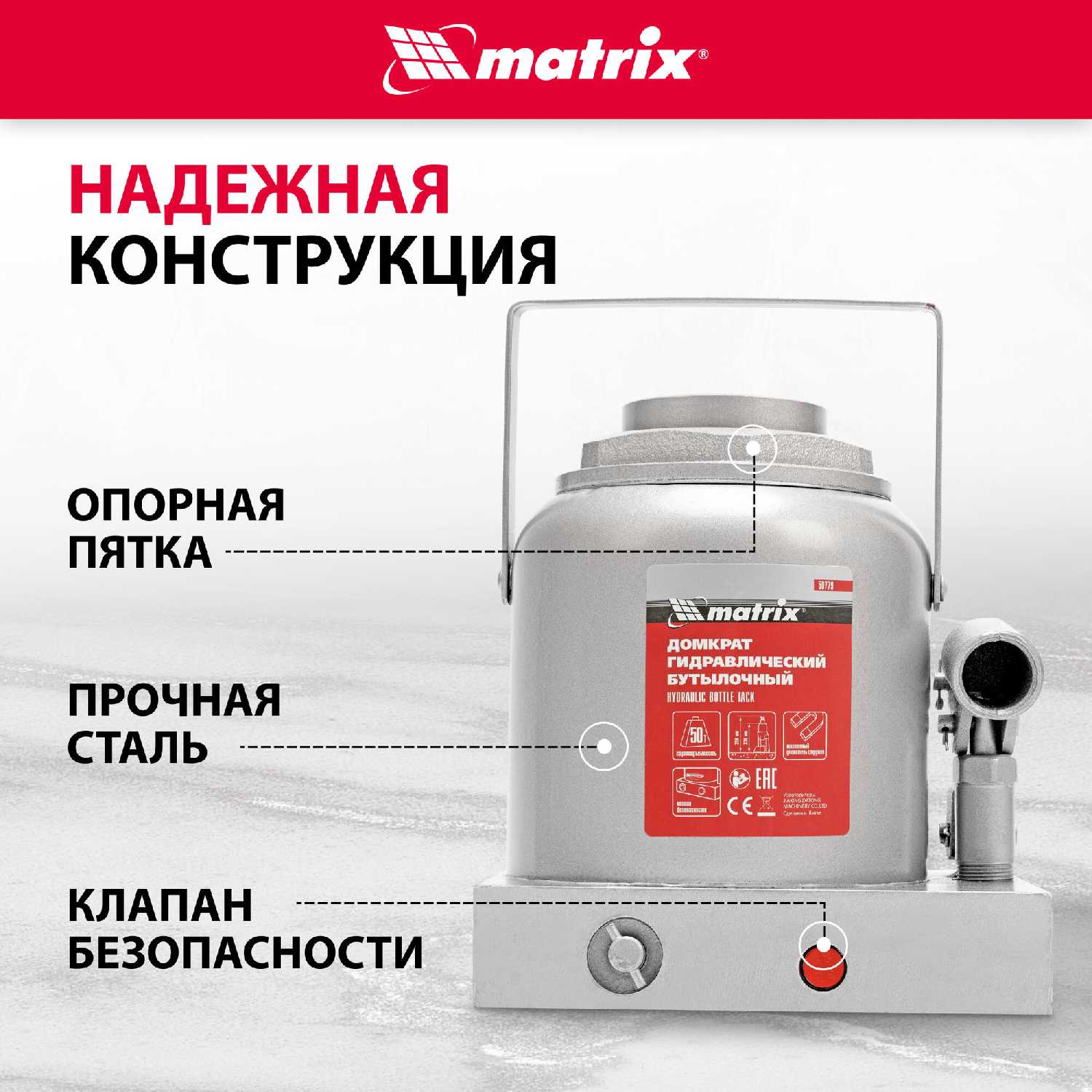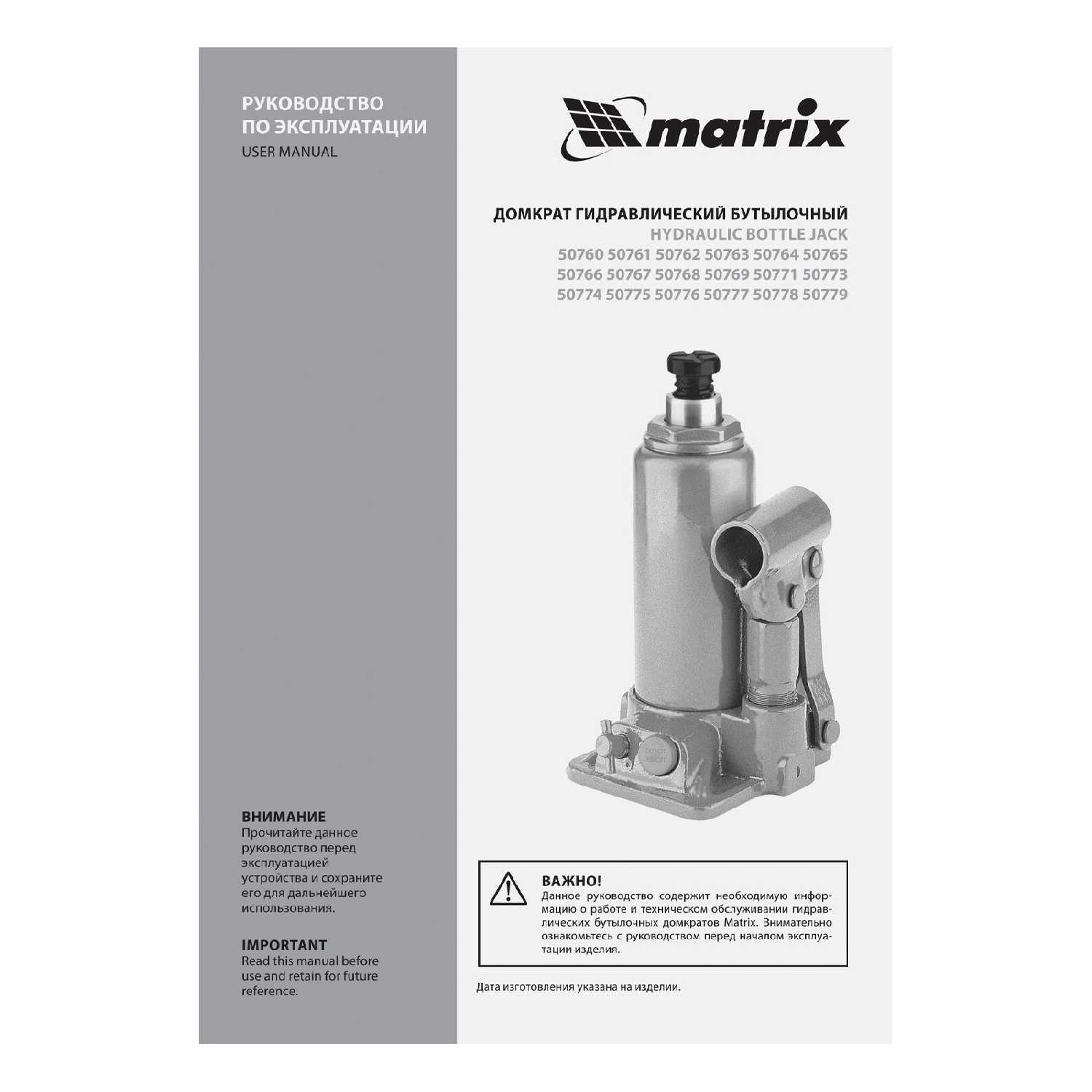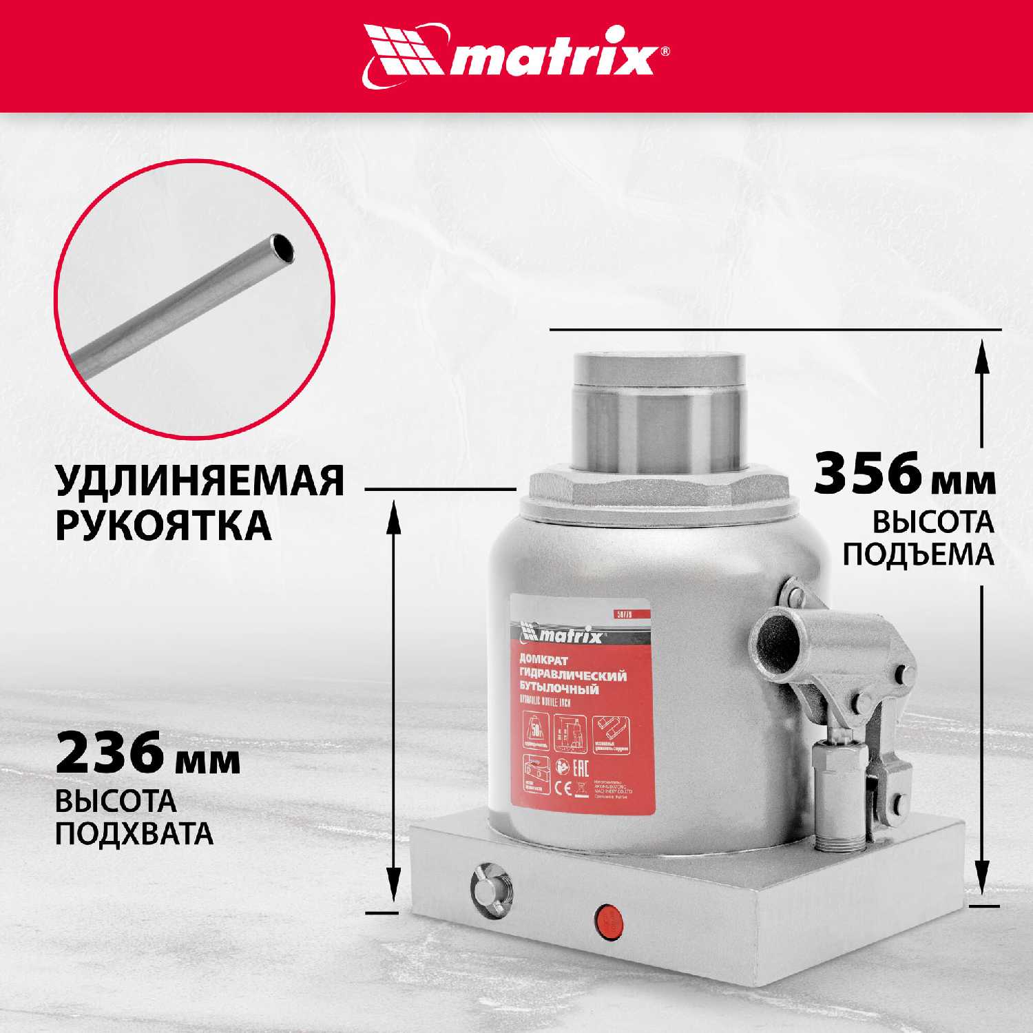 Характеристи matrix Домкрат бутылочный гидравлический для мототехники (50779)