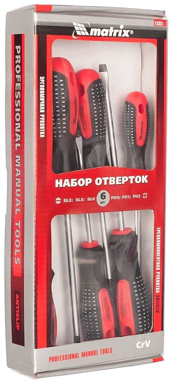 Дополнительная информация : | материал: хромованадиевая сталь, материал рукояти: трехкомпонентный, подпальцевые выемки, отверстия в рукоятках для подвесного хранения, магнитные свойства, отвертки: PH0 PH1 PH2 SL3 SL5 SL6 - 6 шт |