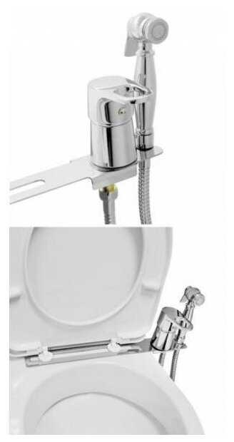 - + Позволяет компактно установить гигиенический душ там, где нет возможности поставить встраиваемый в стену смеситель