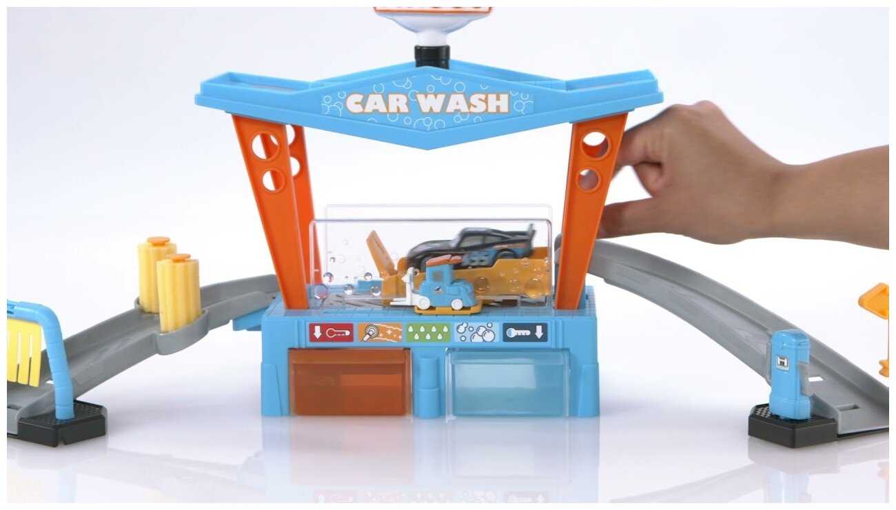- + оригинал, шикарная игрушка! в комплекте машина которая меняет цвет+погрузчик который управляет движением ленты на мойке.