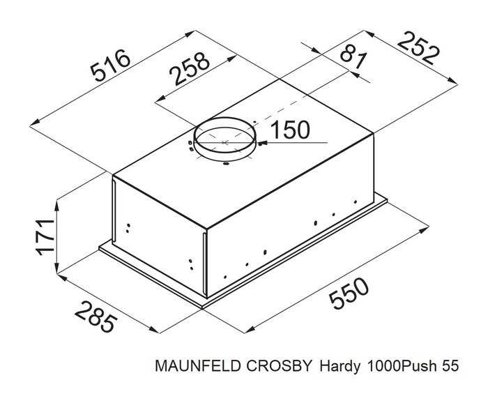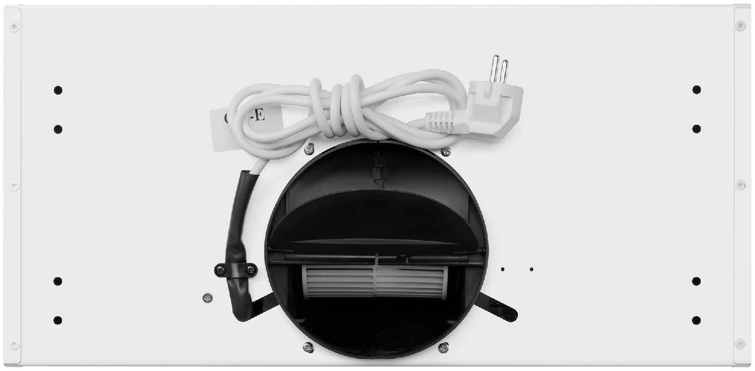 - Стандартные встраиваемые габариты (выходной диаметр 150 мм) и конструкция позволяют легко интегрировать вытяжку в большинство кухонных гарнитуров без необходимости сложной доработки мебели.