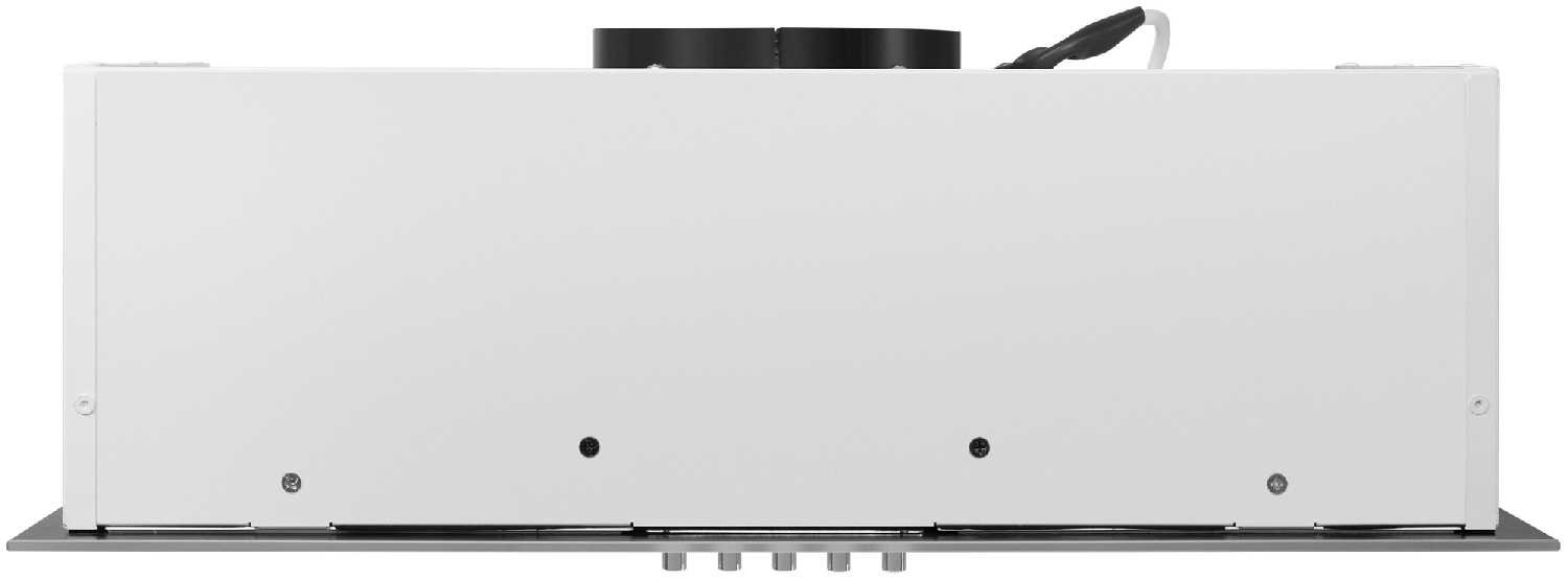 - Минималистичный дизайн без лишних деталей делает вытяжку визуально менее громоздкой и легко сочетаемой с другой встраиваемой техникой.