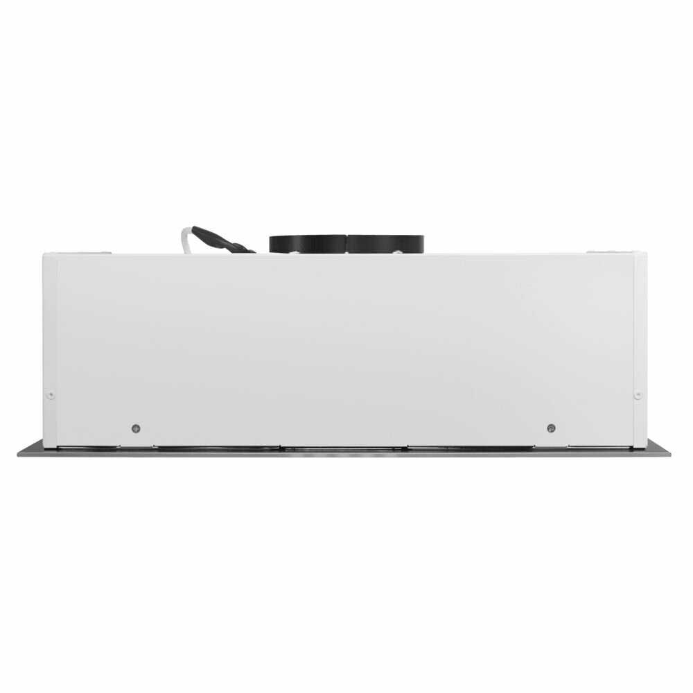 Главное преимущество встраиваемого дизайна — это возможность полностью интегрировать вытяжку в кухонный гарнитур, сохранив единый и лаконичный стиль помещения. Фасад вытяжки скрывается за общей дверцей шкафа, что создает ощущение ровной и гладкой поверхности мебели без выпирающих элементов. Такой подход также позволяет рационально использовать пространство над вытяжкой, организовав там дополнительные полки для хранения. -