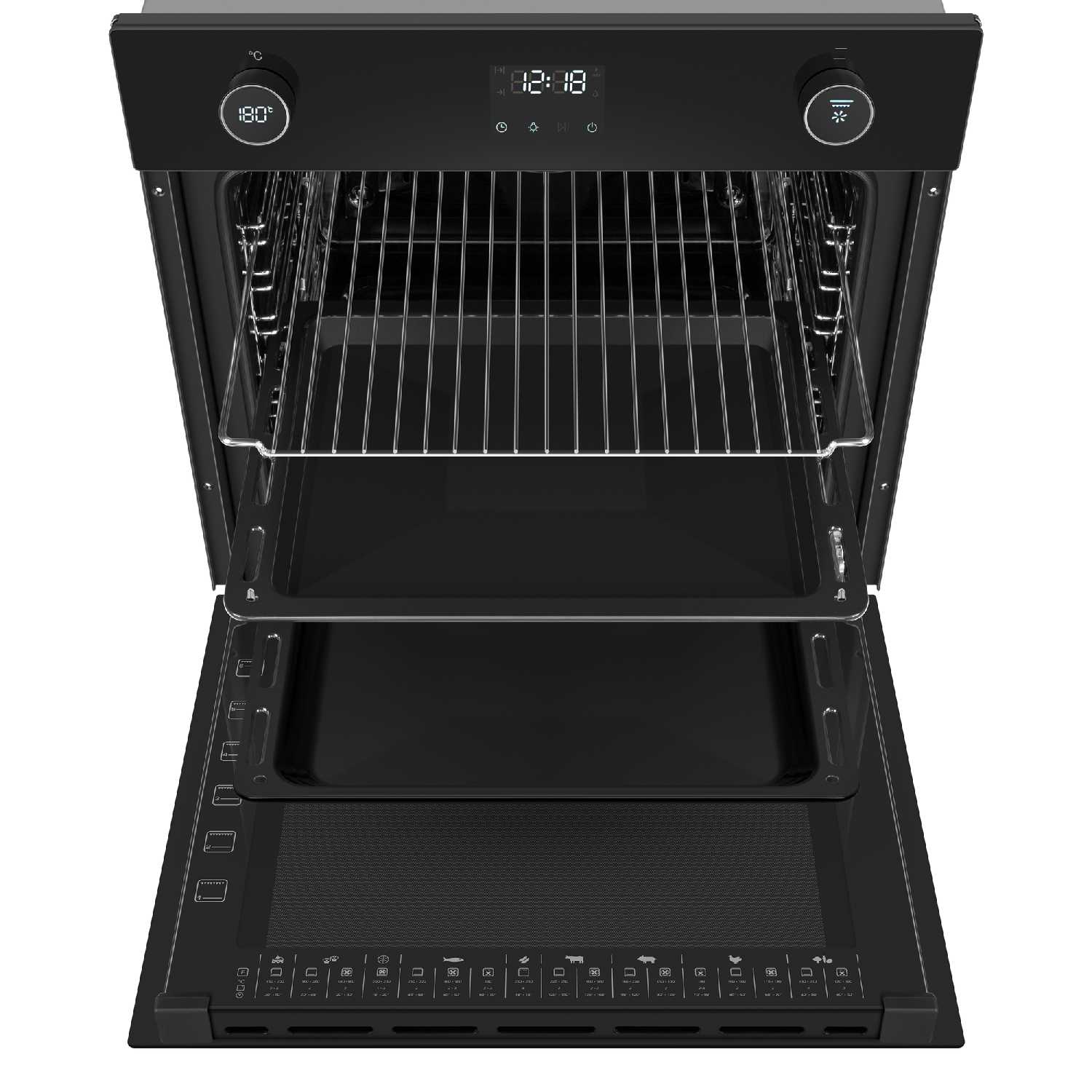 два противня и решетка порадовали. выдвижные рельсы вообще класс. подключается в розетку очень удобно. выглядит стильно модно современно!