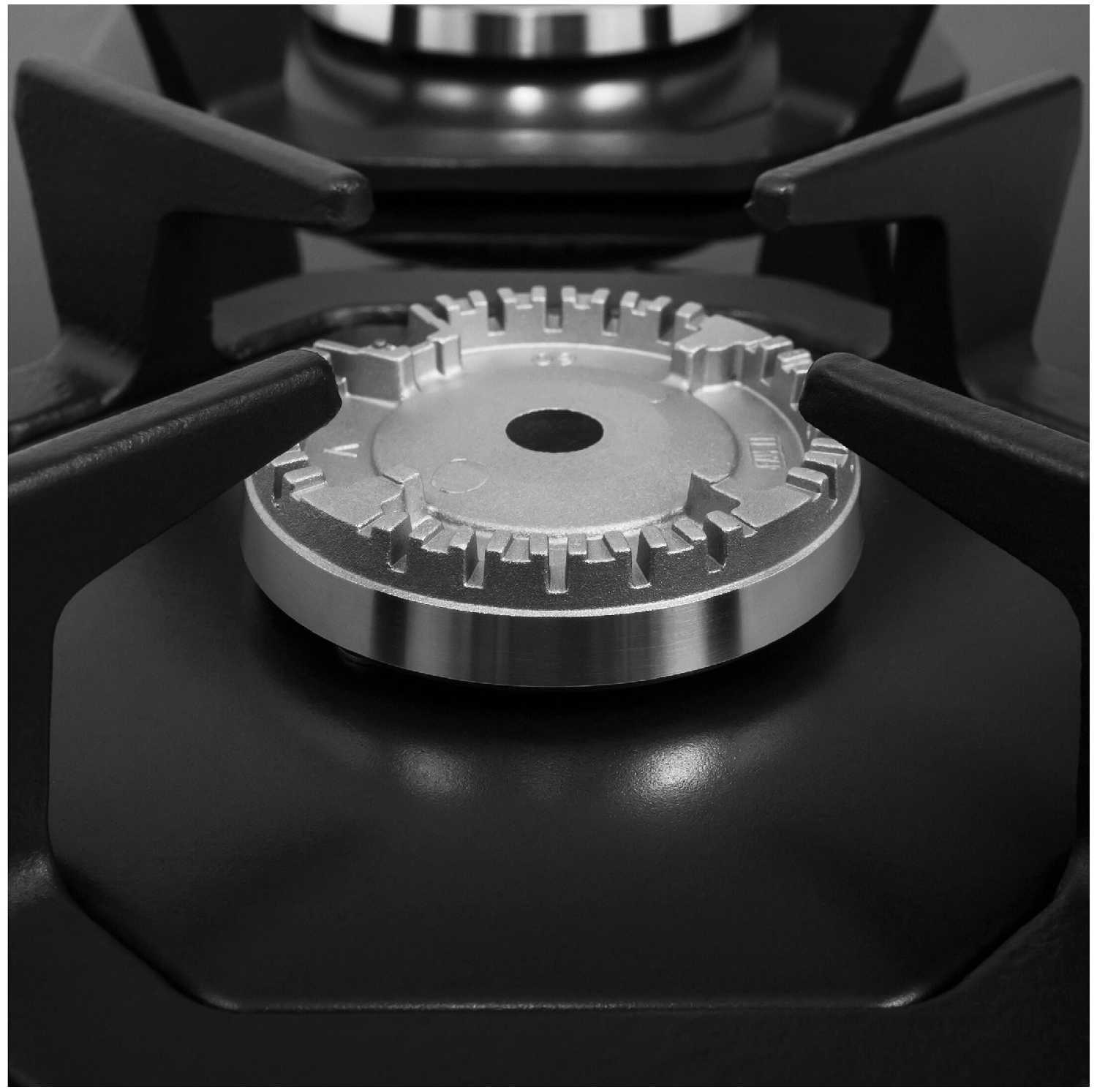 - + Удобно мыть, потому что решетки снимаются по отдельности. Большая конфорка находится не у стены, что очень удобно.