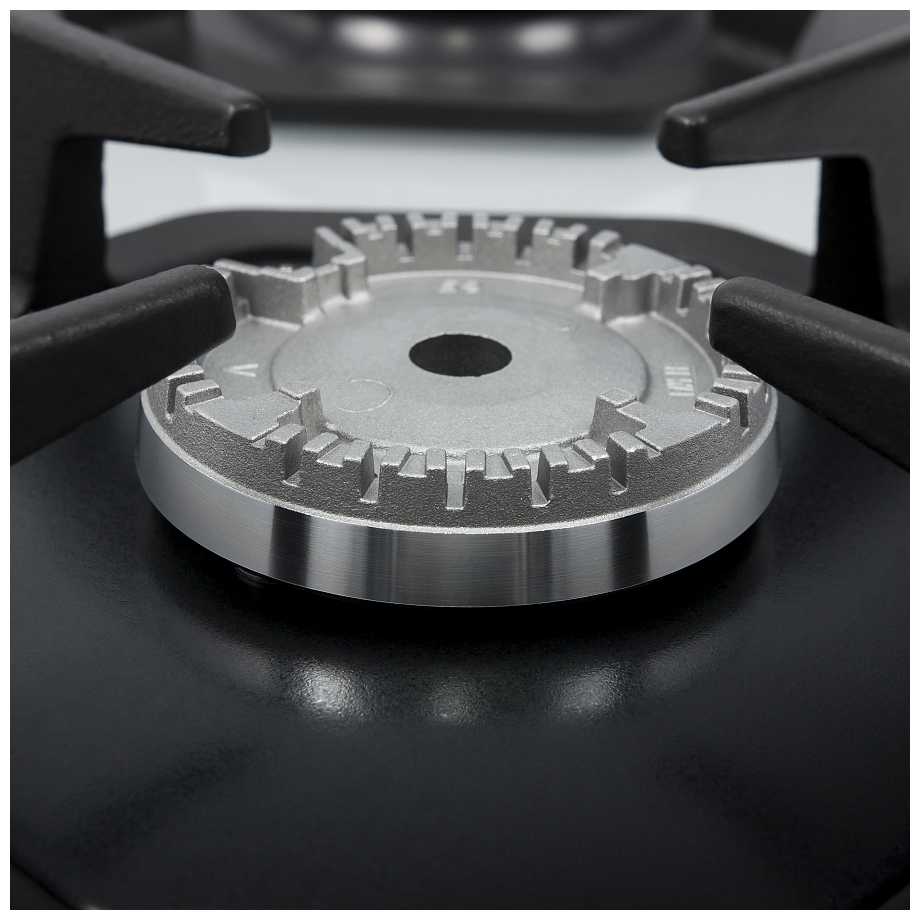 - Вок-горелка (в отдельных моделях) быстро кипятит большие объёмы за счёт двойного ряда пламени.