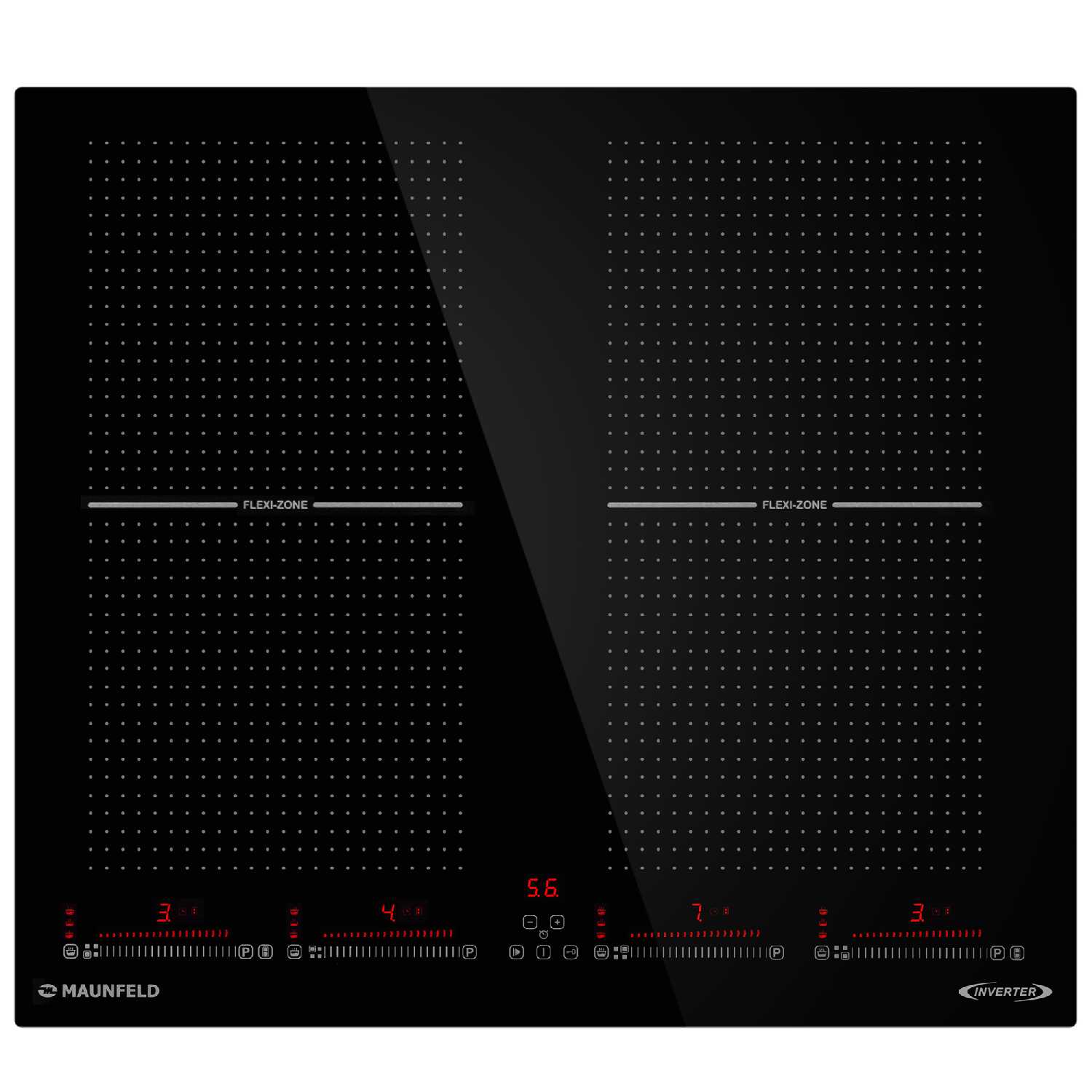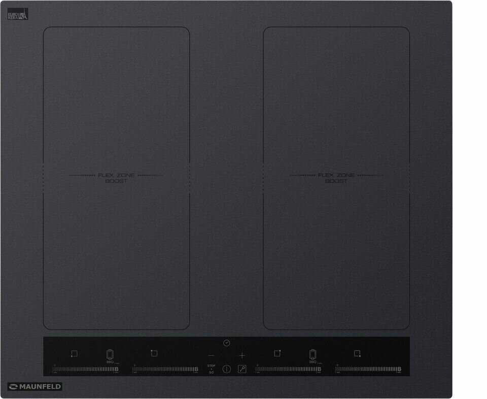 Функция Flex Zone позволяет объединять зоны нагрева, но с ограничением мощности до 6 уровня. При этом объединенные зоны работают не всегда стабильно — если посуда смещена к краю, нагрев может стать неравномерным. Также отмечается, что при объединении зон поверхность может желтеть в местах стыков. -