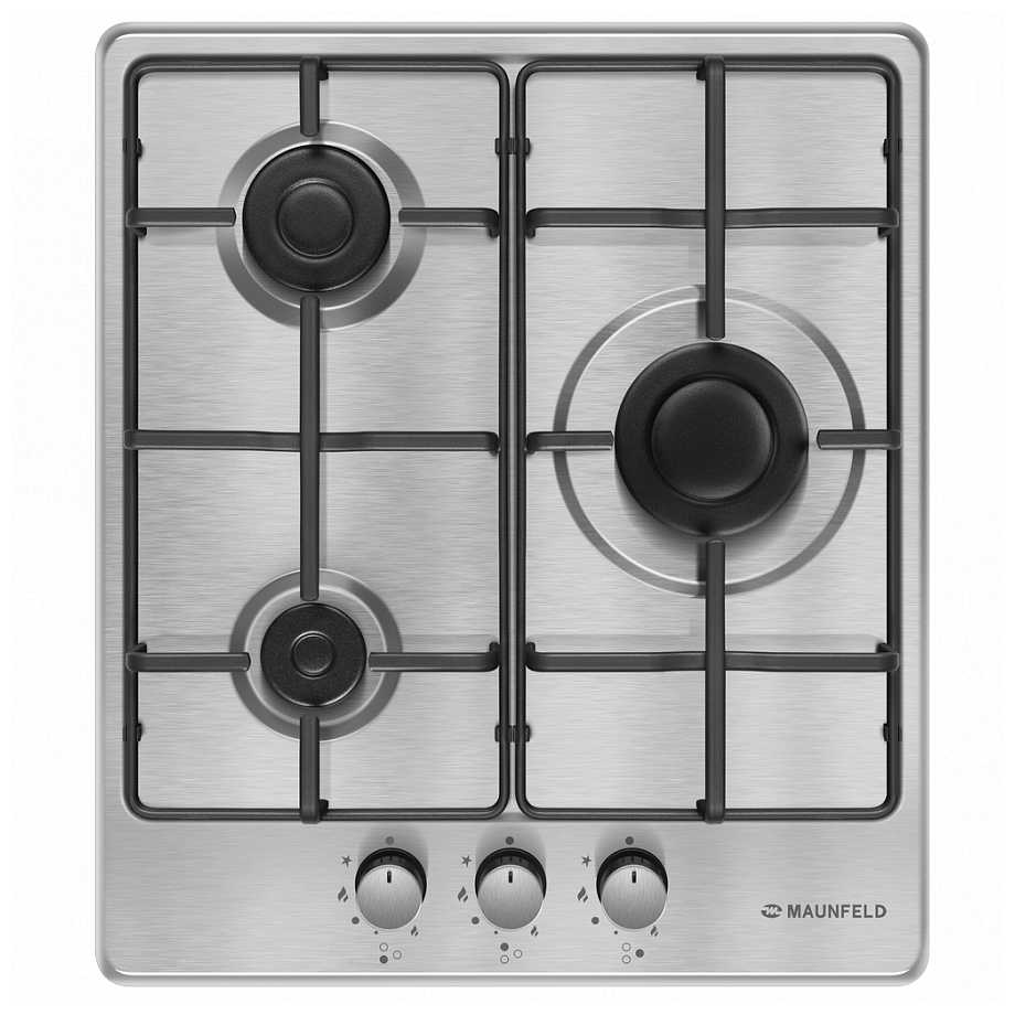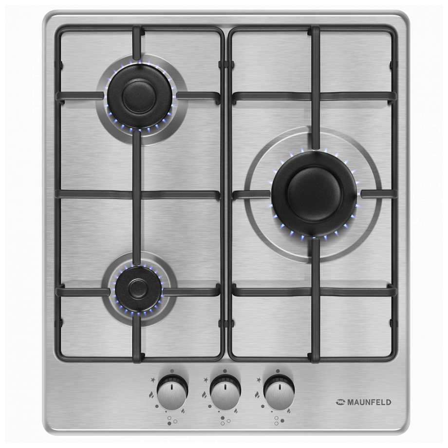 Панель с тремя конфорками выбрали и не случайно. Наличие четырех конфорок все равно не позволило бы их одновременно использовать. А когда их 3 — все удобно помещается, тем более они отличаются повышенной мощностью. Из достоинств для меня: автоматический электроподжиг конфорок, функция «минимального огня», минималистический дизайн, устойчивая удобная решетка, поверхность из нержавеющей стали. Покрытие легко отмывается от жира.