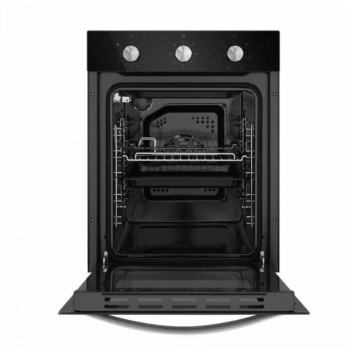 - Встроенный вентилятор обеспечивает циркуляцию горячего воздуха, благодаря чему блюда пропекаются равномерно даже при одновременном использовании нескольких уровней.