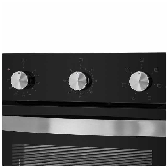 - Механические переключатели с четкой маркировкой режимов (7 программ, включая гриль и выпечку) исключают ошибки при выборе температуры и времени.