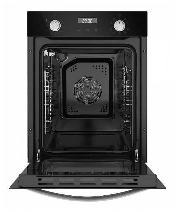 - + Большое количество режимов, утапливаемые крутилки, экранчик с часами и таймерами, звуковые оповещения. Хорошая духовка для небольшой кухни.