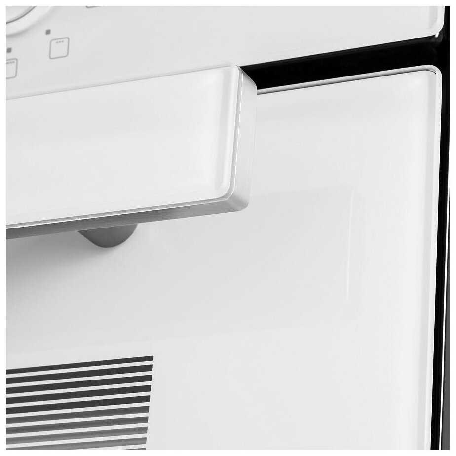 Ручка дверцы отделана стеклом в цвет фасада, что придает духовке вид дорогой, люксовой техники.