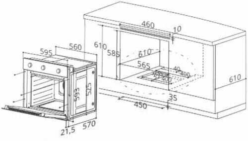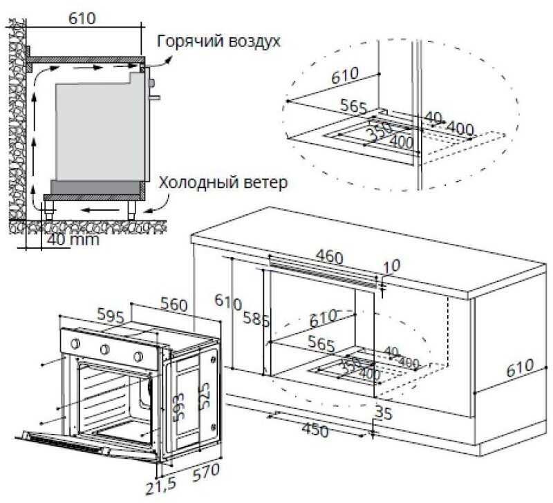 Обязательно наличие вентиляционного зазора под духовкой! Между дном шкафа и полкой модуля мебели должно быть пространство для притока воздуха. Альтернатива — вырез отверстия в дне модуля или установка духовки на специальные салазки. Игнорирование этого пункта инструкции — основная причина постоянного затухания пламени из-за недостатка кислорода. -