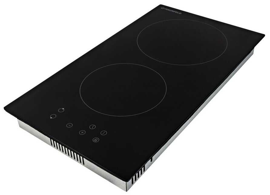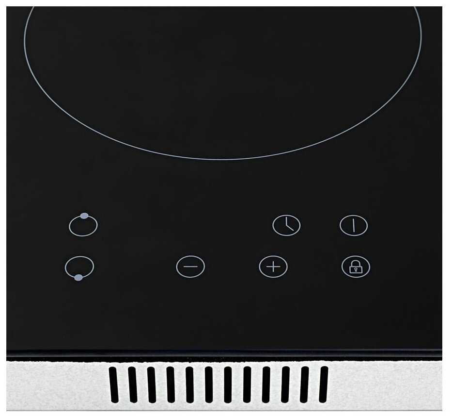 - + недорогая, но с хорошим функционалом, удобный таймер, который работает в двух режимах, как независимый, так и для отключения одной или нескольких конфорок, быстрый нагрев, блокировка от детей