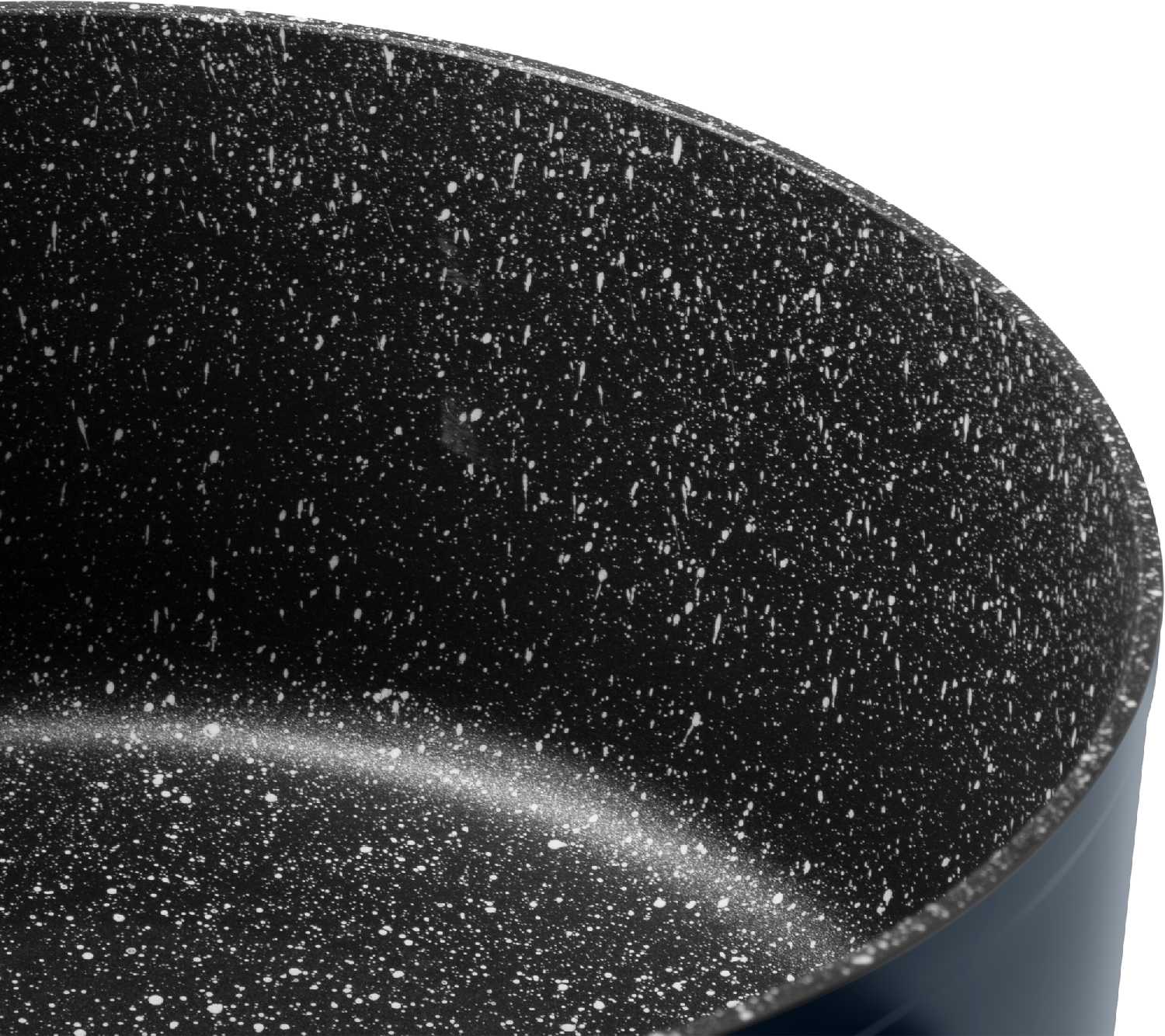 | Дополнительная информация : | Профессиональная удлиненная ручка soft touch (приятная на ощупь) из специального термостойкого пластика бакелит. Мраморное антипригарное покрытие. Совместимость с любым типом плиты. Термостойкое покрытие снаружи оригинального графитового цвета. |