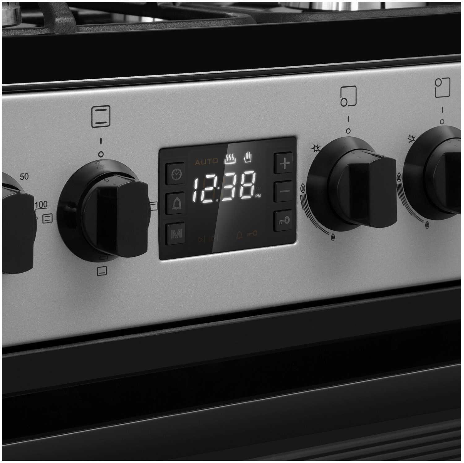 - Отдельные кнопки подсветки духовки и гриля упрощают использование.