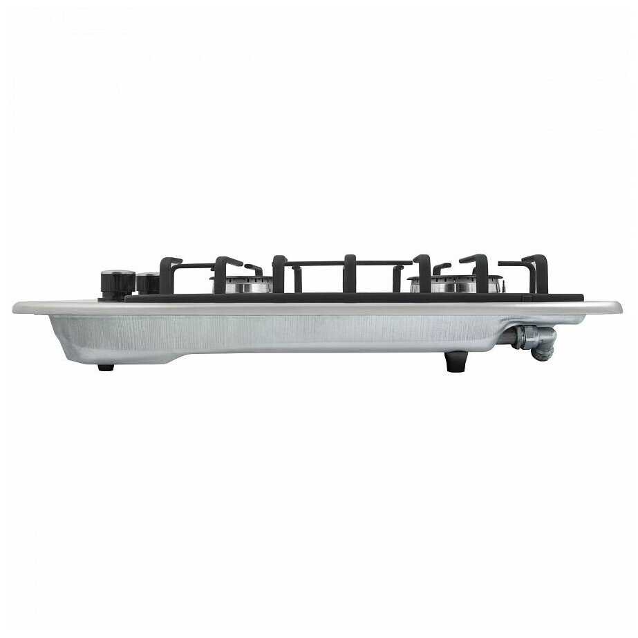 - + Качество сборки, отличная варочная панель на две конфорки, обладает компактным размером, удобно то, что она газовая