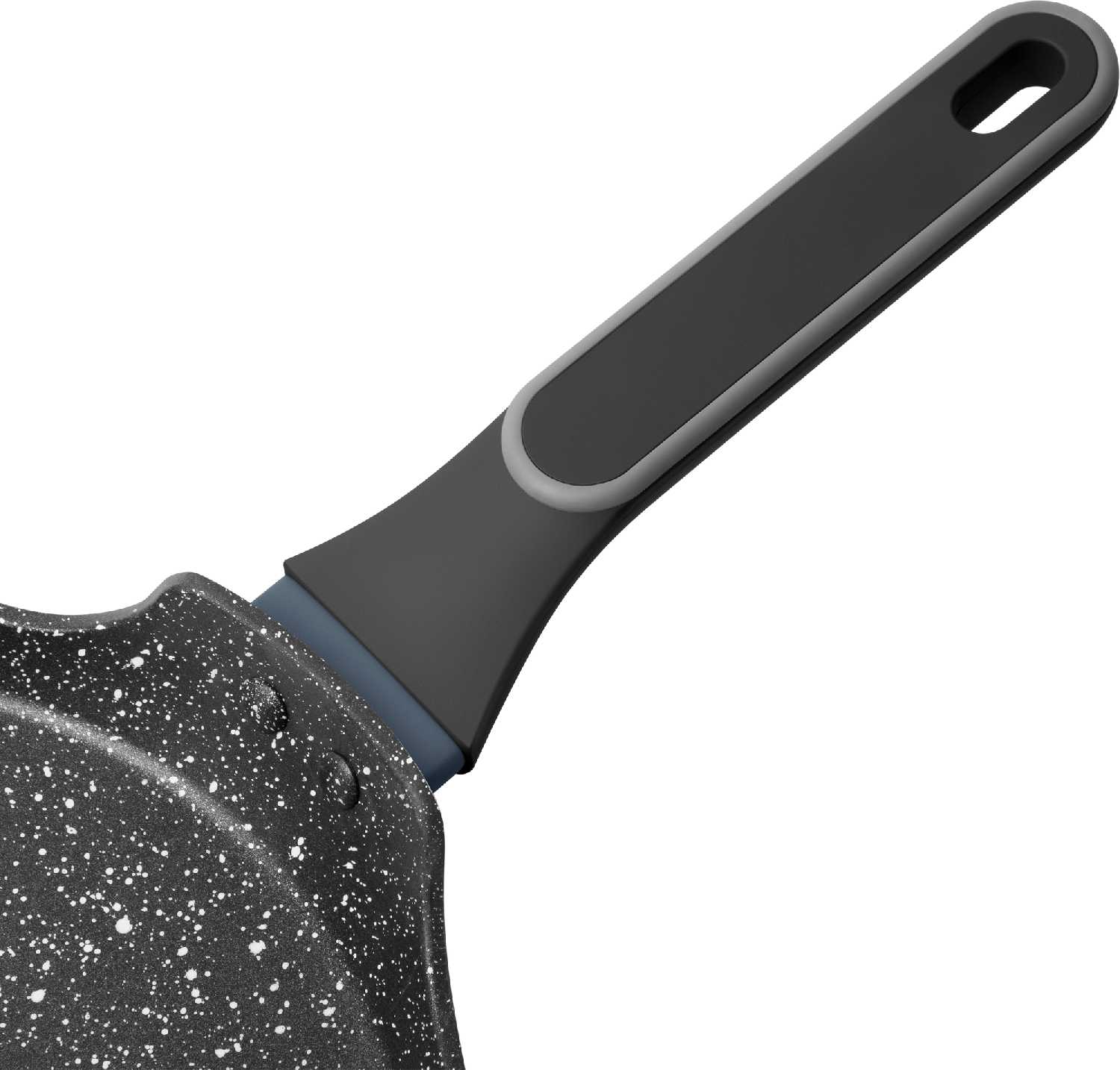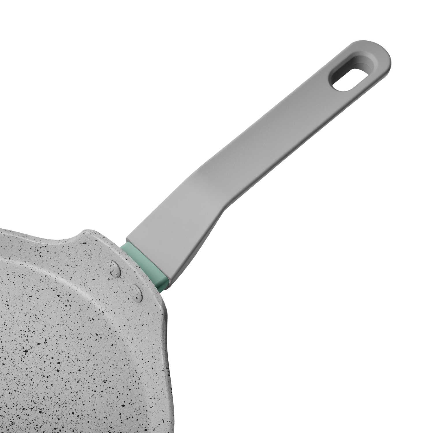 Купила эту блинную сковородку и осталась очень довольна. Она имеет удобную форму и оптимальный размер, что позволяет легко переворачивать блины. На антипригарном покрытие ничего не пригорает и можно использовать минимальное количество масла. Ручка сковороды удобная и не нагревается при готовке.