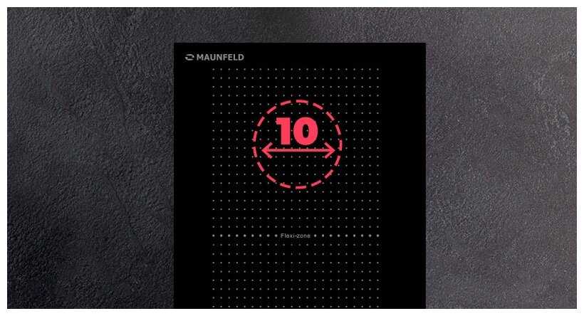 - Flex-зона позволяет использовать посуду разного размера при правильном позиционировании.