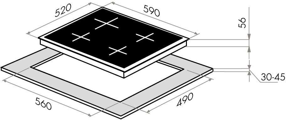 ближняя, левая конфорка 19.5 см, дальняя, левая конфорка 19.5 см, дальняя, правая конфорка 19.5 см, ближняя, правая конфорка 19.5 см