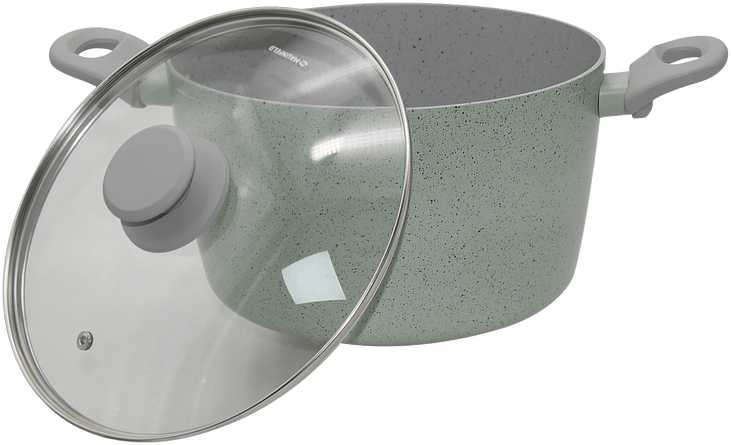 | Дополнительная информация : | Профессиональная удлиненная ручка soft touch (приятная на ощупь) из специального термостойкого пластика бакелит. Мраморное антипригарное покрытие. Совместимость с любым типом плиты. Термостойкое покрытие снаружи оригинального фисташкового цвета. |
