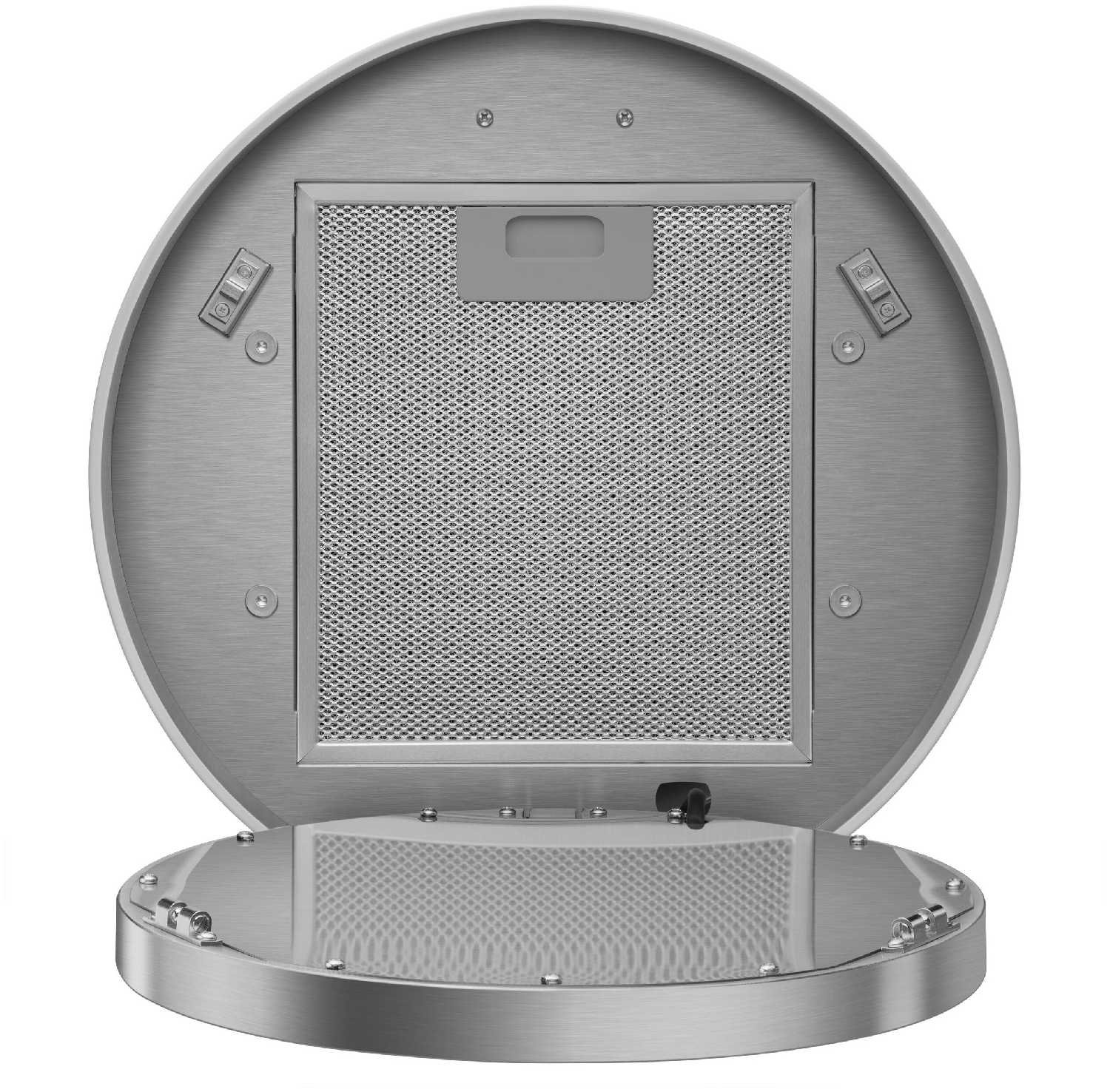 Очень крутая и мощная вытяжка, которая подойдет для кухни с высокими потолками. Есть электронное управление – можно переключать вытяжку в 4 режимах скоростей. Еще удобно и то, что свет на вытяжке достаточно яркий – могу приготовить покушать, не включая основное освещение. Но самое главное – это форма. Такая модель в виде цилиндра хорошо вписывается в интерьер современной кухни.