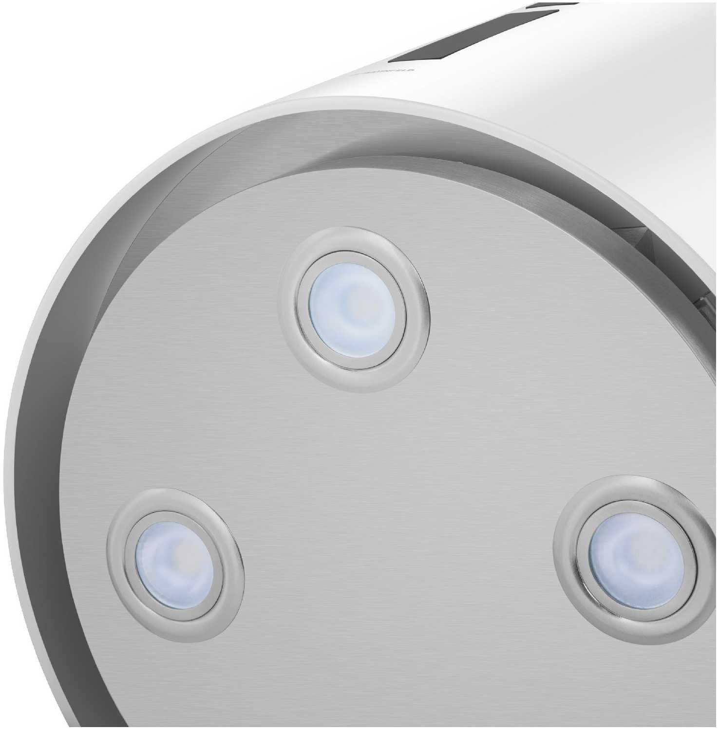 Очень крутая и мощная вытяжка, которая подойдет для кухни с высокими потолками. Есть электронное управление – можно переключать вытяжку в 4 режимах скоростей. Еще удобно и то, что свет на вытяжке достаточно яркий – могу приготовить покушать, не включая основное освещение. Но самое главное – это форма. Такая модель в виде цилиндра хорошо вписывается в интерьер современной кухни.