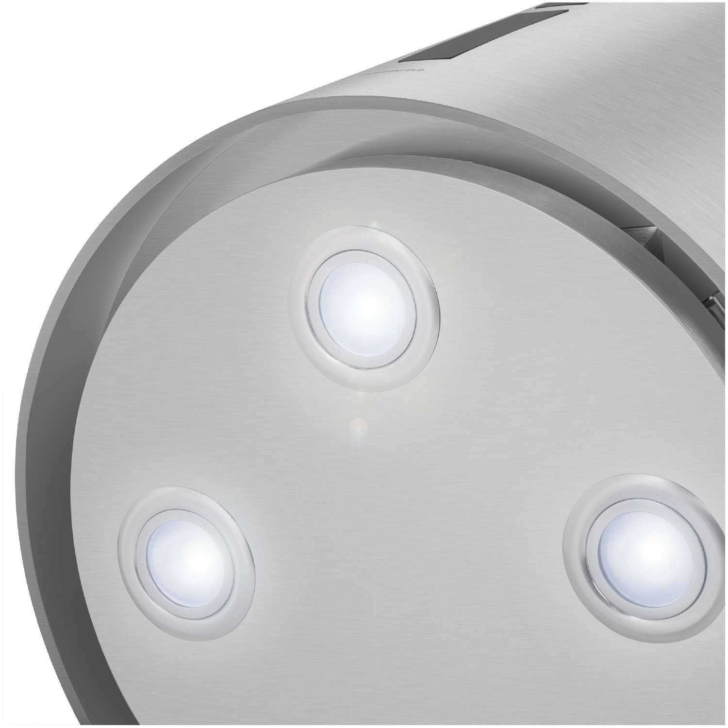 Стильная островная вытяжка приятного серебристого цвета. Она не особо привлекает к себе внимание, но все же является одним из заметных акцентов в интерьере. Работает нормально, убирает ненужный запах и выводит его в трубу. У меня у кухни-гостиной площадь 32 кв. метра, и она более или менее быстро убирает всё ненужное. Скорости работы разные, но по факту мы включаем первую или вторую, потому что простое проветривание тоже никто не отменял. Жиропоглощающий фильтр удобно мыть, но так как он небольшой, то и делать это желательно хотя бы раз в несколько недель. Еще есть светодиодное освещение, которое тоже выглядит симпатично.