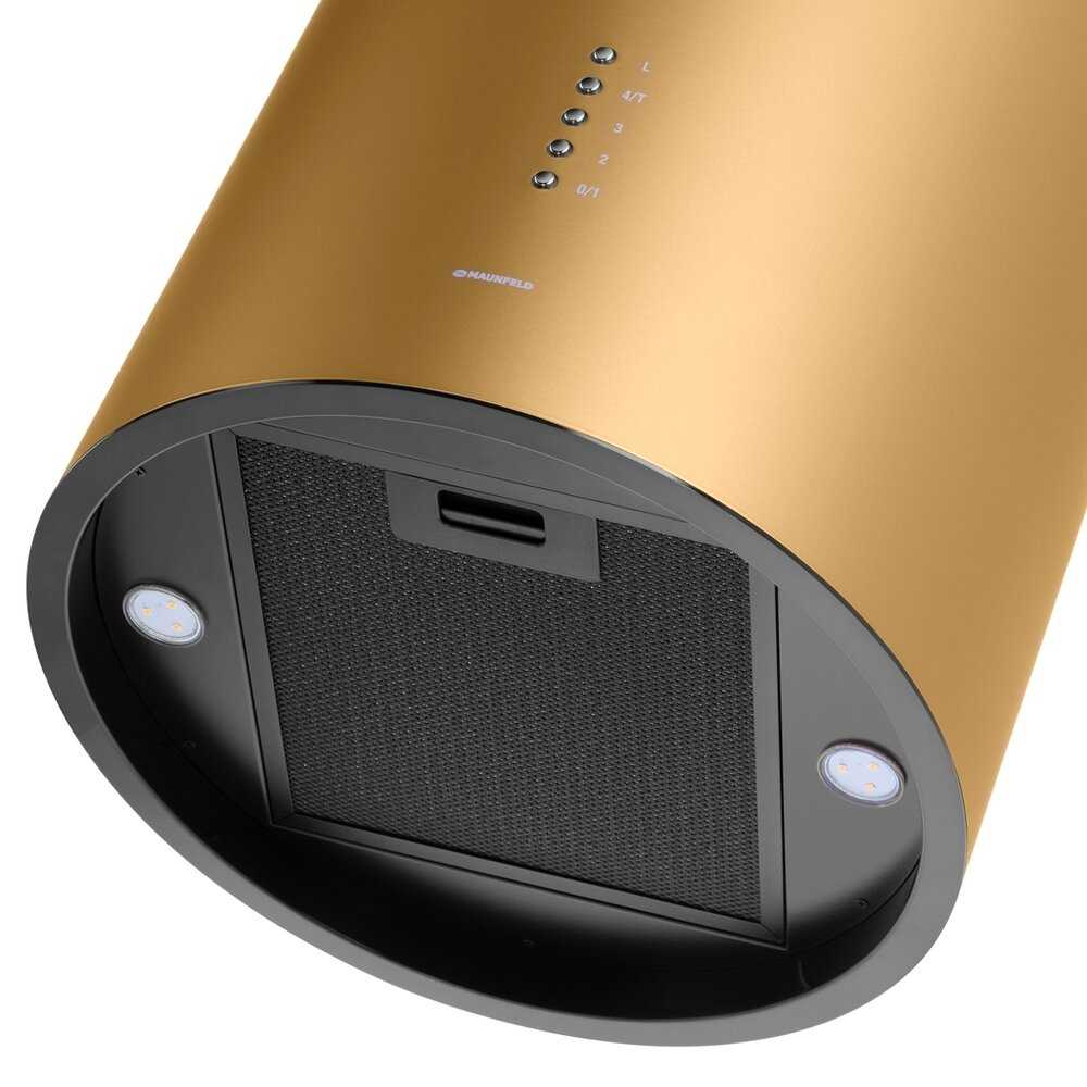 Модное решение. Но слишком дорого за такую простую по функционалу и исполнению вытяжку. Это просто металлическая труба с четырьмя кнопками и подсветкой. Внутри самый простой вентилятор