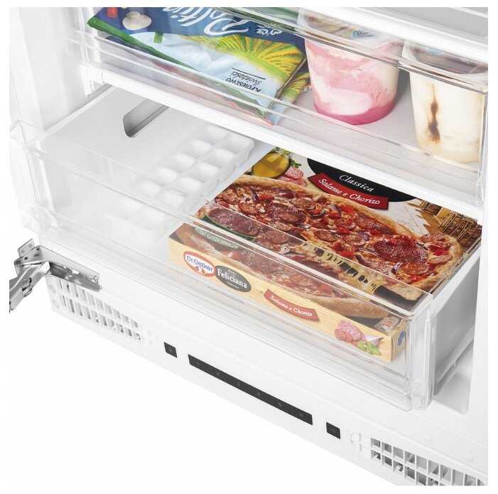 - + Морозит все очень хорошо, нет огромной наледи и снега на продуктах и стенках камеры. Ящики легко выдвигаются на полную длину. Они пластиковые со встроенной ручкой сверху. Выглядят вполне надежными. Места занимает морозилка относительно немного. В нишу шириной 60 см встала без проблем.