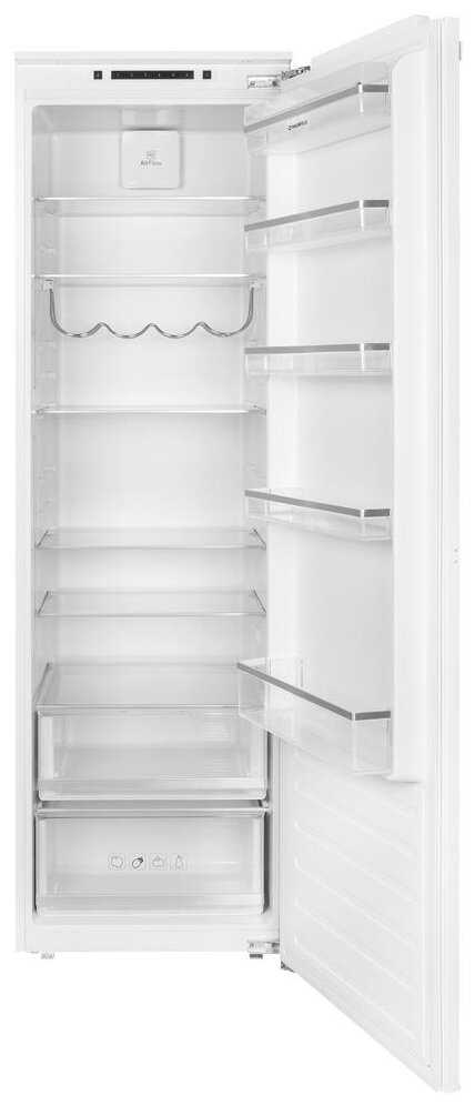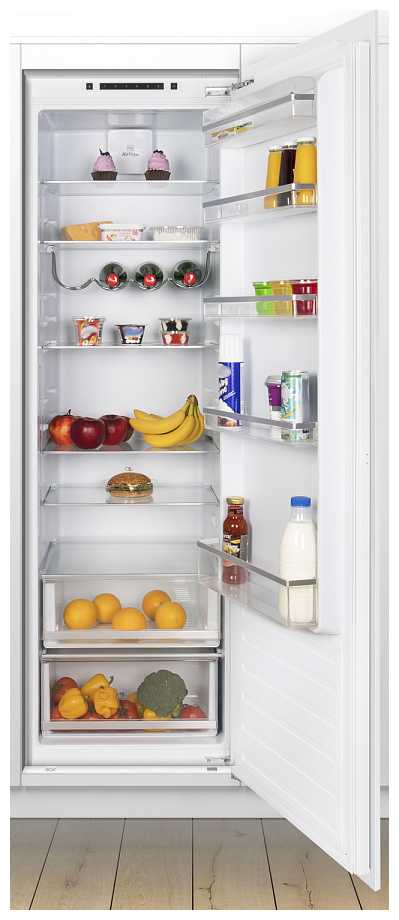 Отличный встраиваемый холодильник. Оказался очень вместительным, внутри много полок, ящиков и места для хранения продуктов. Полки можно регулировать по высоте, очень удобно. Без труда вписался в кухню. Работает тихо, не слышно даже ночью. Отсутствие морозилки для меня скорее даже плюс. Нет постоянного намерзания льда.