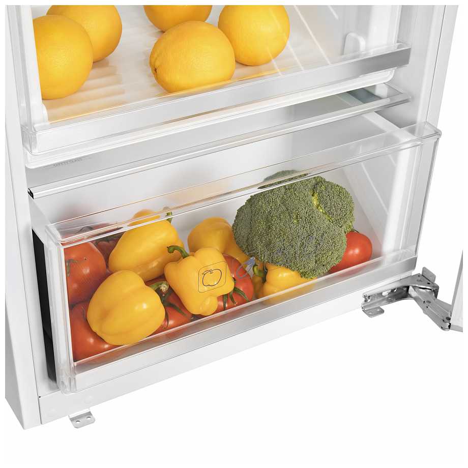 - Два глубоких выдвижных ящика для овощей/фруктов, отделение для бутылок и два лотка для яиц обеспечивают удобное зонирование.