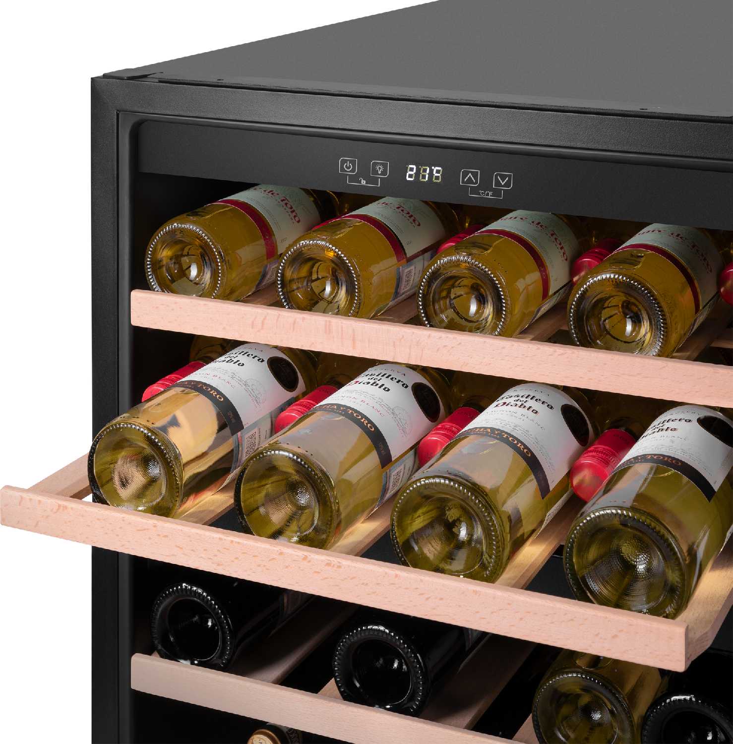 Удобный и очень вместительный винный шкаф с 2 зонами, в каждой из кторых мы задаем нужную температуру. Хоть он и компактный, но довольно вместительный. За дизайн отдельная благодарность. Всё продумано до мелочей.