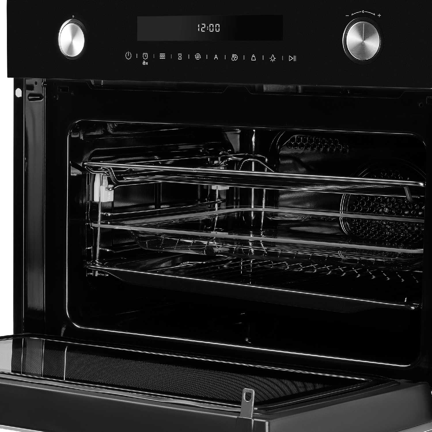 Долго выбирала духовку поменьше, чтобы в мою кухню поместилась, но при этом чтобы и готовить на всю семью можно было. С этой духовкой проблем нет! 50 литров хватает с головой, даже на праздники, когда гостей много. И пироги пеку, и мясо запекаю - все отлично пропекается.