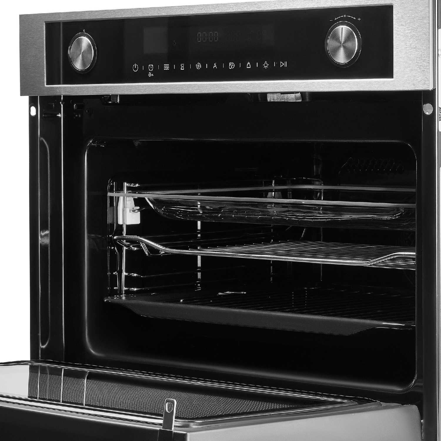 Долго выбирала духовку поменьше, чтобы в мою кухню поместилась, но при этом чтобы и готовить на всю семью можно было. С этой духовкой проблем нет! 50 литров хватает с головой, даже на праздники, когда гостей много. И пироги пеку, и мясо запекаю - все отлично пропекается.