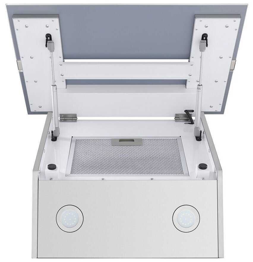 Мощная вытяжка, легко в эксплуатации, стильная., хорошее освещение.